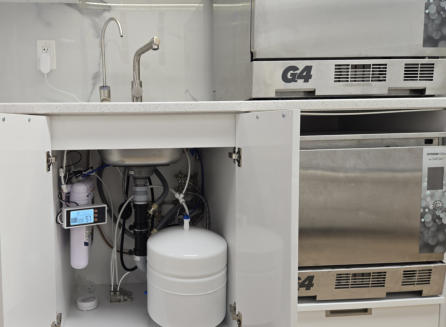 Incoming tap water passes through pre-filters that remove sediment, chlorine, and large particles, protecting the system and extending membrane life.  Step 2: Reverse Osmosis (RO) The RO membrane removes up to 99% of dissolved solids, including minerals, heavy metals, and contaminants.  Step 3: De-ionization (DI) DI resin polishes the RO water by removing remaining ions, producing ultra-pure, zero-TDS water (0 ppm).  Step 4: Autoclave-Safe Output The result is distilled-quality water on demand, ideal for:  •	Dental autoclaves •	Ultrasonic cleaners •	Dental chair water bottles No bottled distilled water. No storage. No handling. DI filters