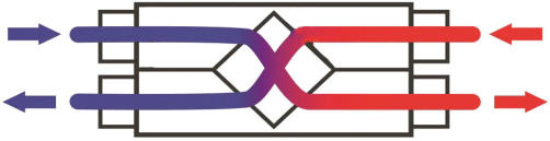The CoolBOX is a heat exchanger that transfers heat between two fluids — one hot and one cold — without mixing them.