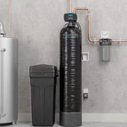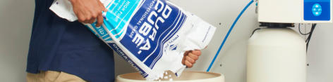 A water softener removes calcium and magnesium and replaces them with sodium (Na⁺) or potassium (K⁺) ions through a
