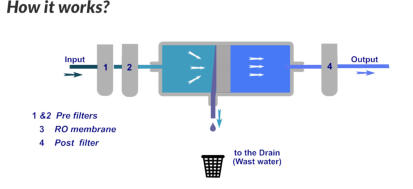 It works by applying pressure to water, forcing it through a semi-permeable membrane that allows